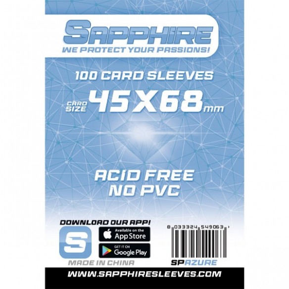 100 Sleeves size Azur 45mm x 68mm.